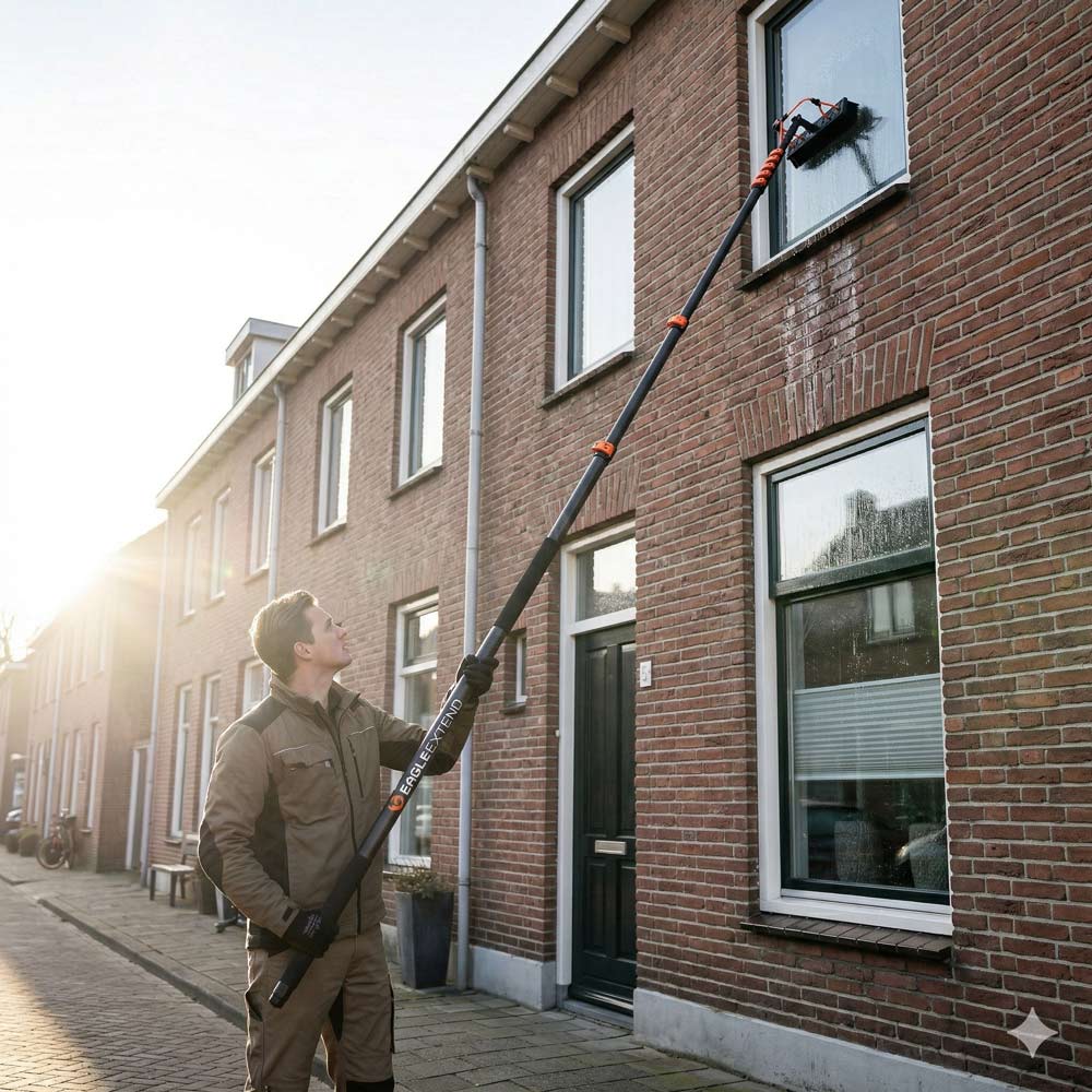 Veel huiseigenaren zien op tegen het wassen van ramen op de eerste verdieping of bij een dakkapel. Het balanceren op een ladder met een emmer sop is niet alleen onhandig, het is ronduit gevaarlijk. Vaak worden deze lastige ramen daarom overgeslagen. Het resultaat? Minder lichtinval en een onverzorgde uitstraling van je woning.
